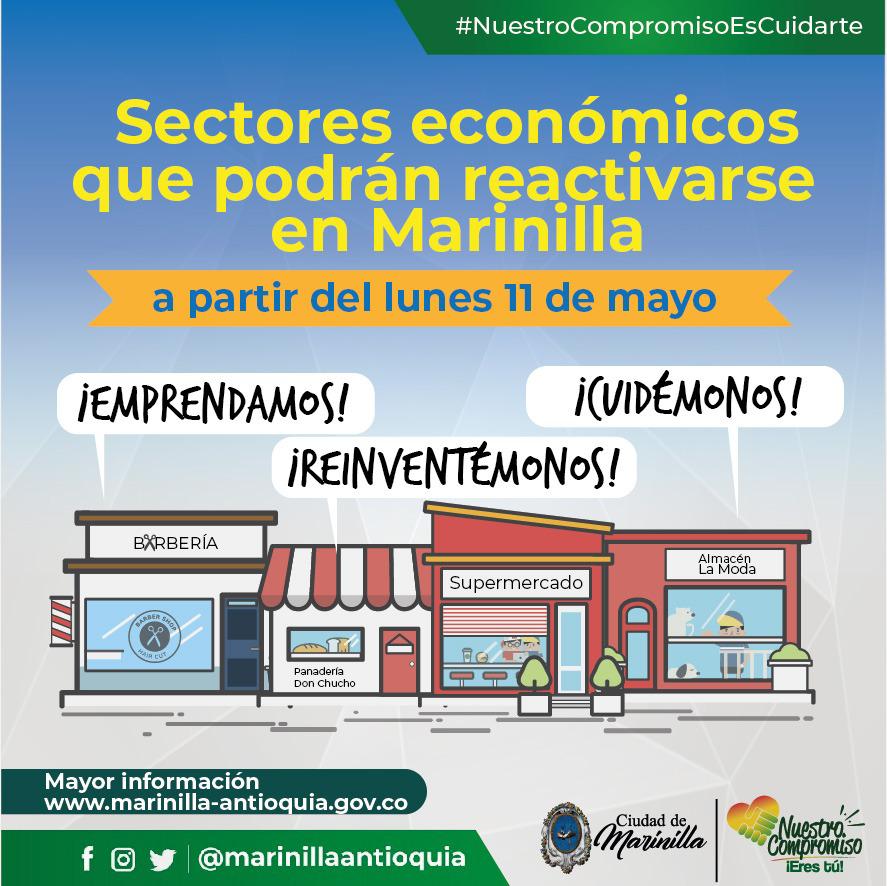 Por su parte, los propietarios de establecimientos, que estén interesados en reabrir, primero deberán construir un protocolo de bioseguridad, relacionado con la función que se desempeña, a fin de evitar el contagio del COVID-19 en clientes y colaboradores, luego tendrá que registrar su protocolo desde el lunes 11 de mayo a las 6:00 a.m. en la página web www.marinillaemprende.com, al ingresar el documento, el interesado recibirá una autorización temporal para que pueda dar apertura a su local.