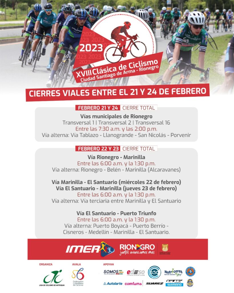 ¡Atención! Estos serán los cierres viales que se tendrán con la Clásica de Ciclismo de Rionegro