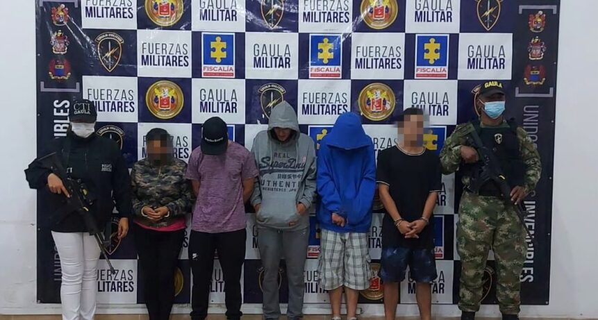 En coordinación con el Gaula Militar Oriente, la Fiscalía 53 especializada, el CTI y gracias al apoyo del Centro de Control y Monitoreo de Rionegro en un operativo que se realizó en el sector de Los Lagos, se logró la captura de 5 personas en flagrancia señalados de pertenecer a “Los Pamplona”, grupo delincuencial que venía intimidando a los habitantes de este municipio.