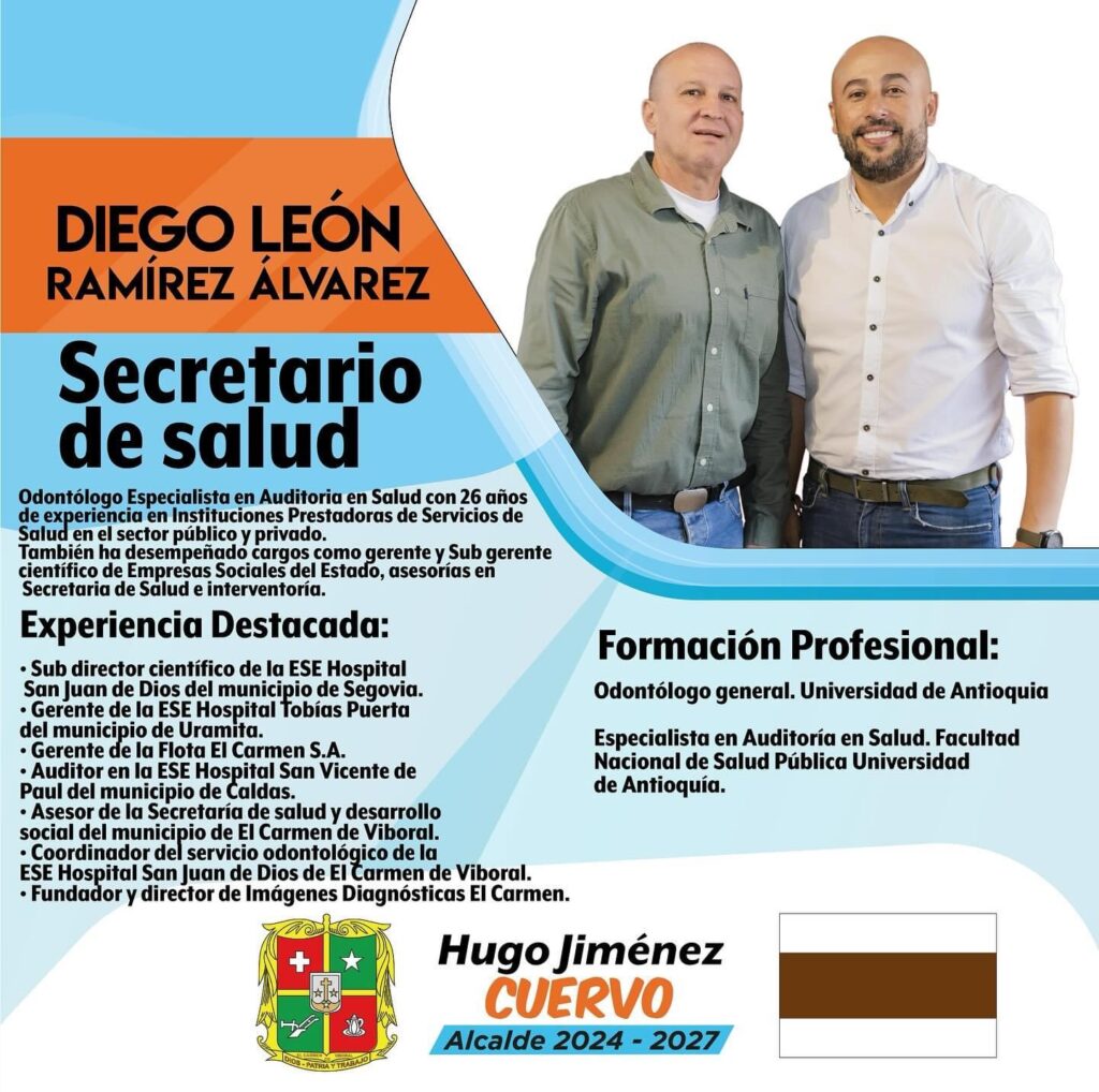 En los últimos días, el alcalde electo de El Carmen de Viboral, Hugo Jiménez Cuervo, ha continuado haciendo públicos más nombramientos de su gabinete.