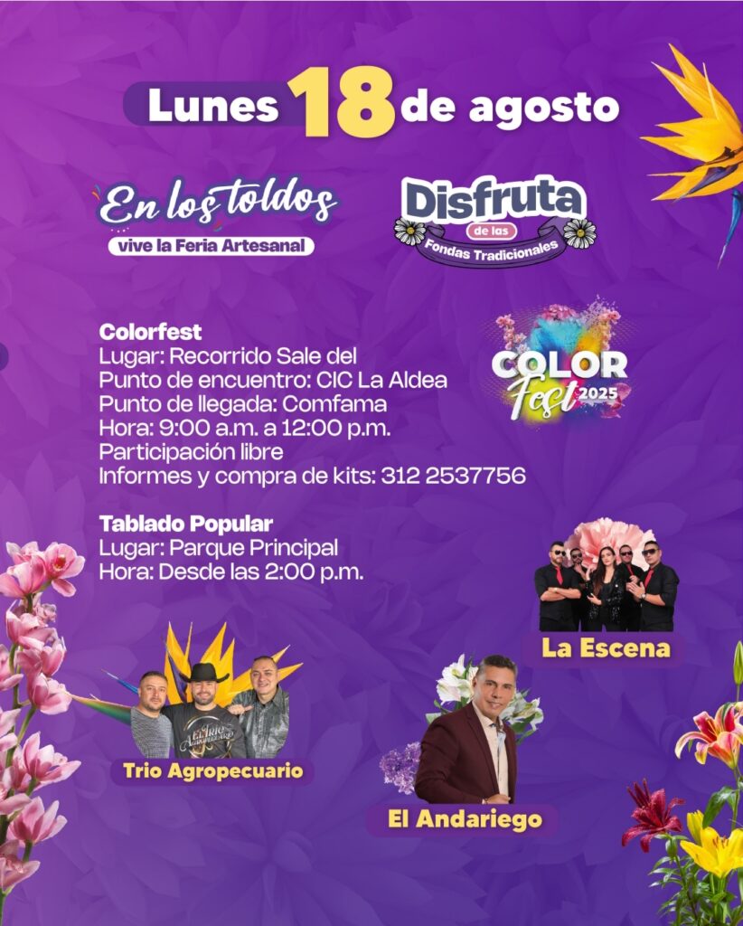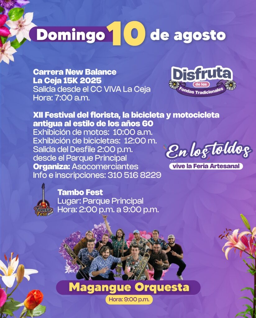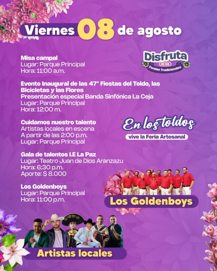 Luego de ocho años, el parque principal de La Ceja volverá a recibir a propios y visitantes para celebrar la versión 47 de las Fiestas del Toldo, las Bicicletas y las Flores, que se realizarán del 8 al 18 de agosto de 2025.