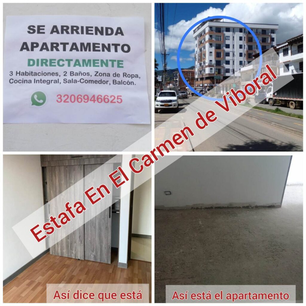 Yesica nos contó: “en estos momentos hemos recibido varias llamadas de varias personas donde nos están preguntando si ese apartamento realmente está en arriendo, y varias personas desafortunadamente han sido estafadas, consignan el montó que están solicitando que son 750 mil pesos, libre de todo, pero realmente la constructora no tiene conocimiento de este tema y son personas ajenas a nosotros, del número telefónico que se están poniendo esas publicaciones es el 320 694 6625, pedimos que estén muy atentos, que informen a las personas ya que es muy triste que estás personas inescrupulosas se estén aprovechando de todos.” Relató Giraldo.