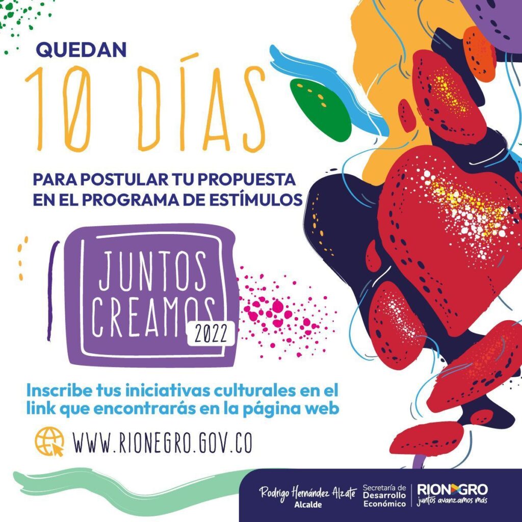 Rionegro: Quedan pocos días para que te postules al programa de estímulos Juntos Creamos 2022