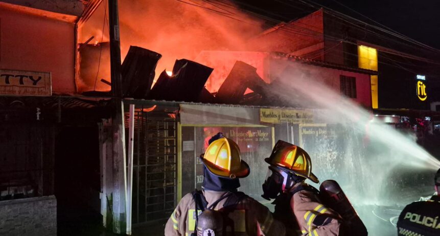 Incendio estructural en el barrio San Antonio de Rionegro deja tres locales y una vivienda afectados
