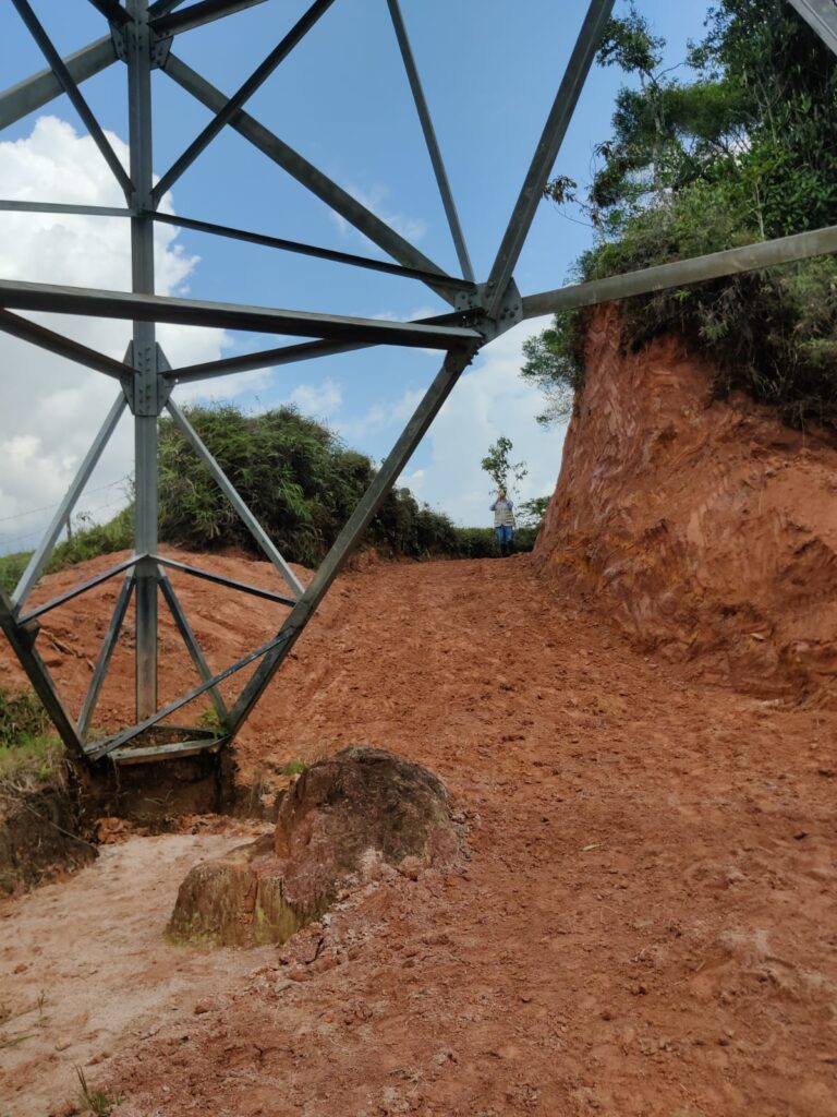 Así mismo, se evidenció que se trata de una vía cuya ejecución no es apta por las condiciones del terreno, el cual presenta altas pendientes y podría generar movimientos en masa (deslizamientos). Sumado a lo anterior, esta obra estaba poniendo en riesgo la estabilidad de una torre de energía.